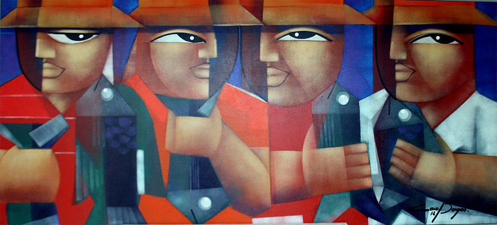 obras figurativas e abstratas, que têm perfeito equilíbrio entre cores, formas